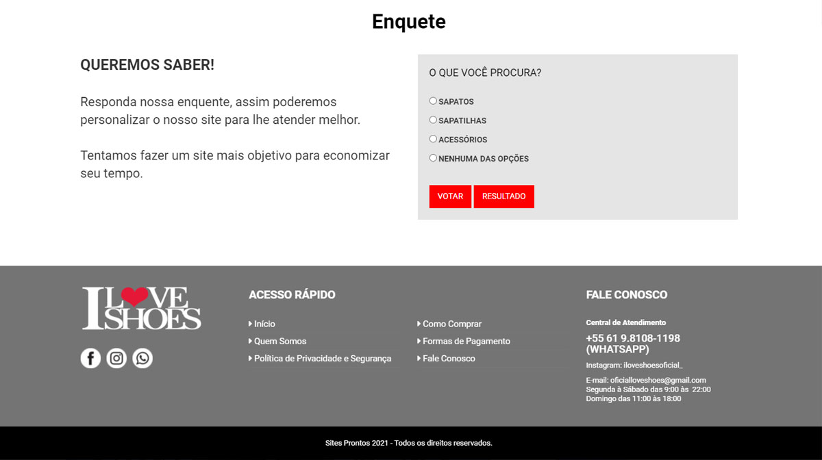 O Site Pronto Loja Virtual, tem duas versões possível de ativação quase que imediata. A versão básica e a versão avançada, tem um sistema totalmente intuitivo em que basta acessar a área administrativa, e fazer seu ajuste fino. Podendo trocar a cor principal do site, textos, imagens e sliders de forma fácil e rápida.