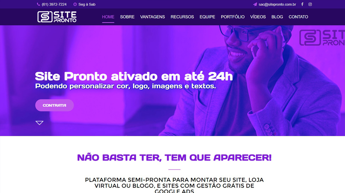 O Site Pronto Empresarial, tem duas versões possível de ativação quase que imediata. A versão básica e a versão avançada, tem um sistema totalmente intuitivo em que basta acessar a área administrativa, e fazer seu ajuste fino. Podendo trocar a cor principal do site, textos, imagens e sliders de forma fácil e rápida.